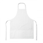 White polycotton apron with one pocket.